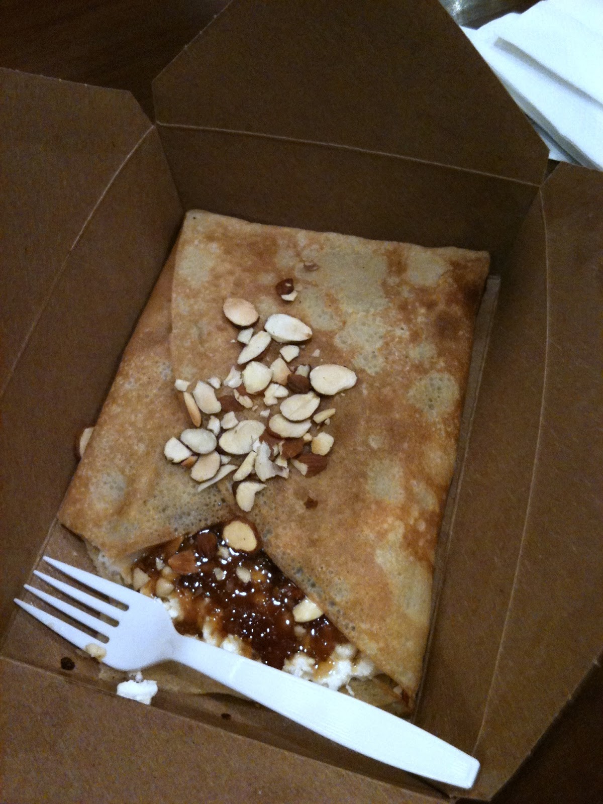 La Creperie Voila. I had a goat cheese/apple & fig jam/almond crepe for dinner the first night when Bart was working late and it was so good, that he stopped and got one on his way back to the hotel a couple hours later. Isabel and I got lunch here the next day (although my egg/spinach one was not nearly as good as the goat cheese one).
