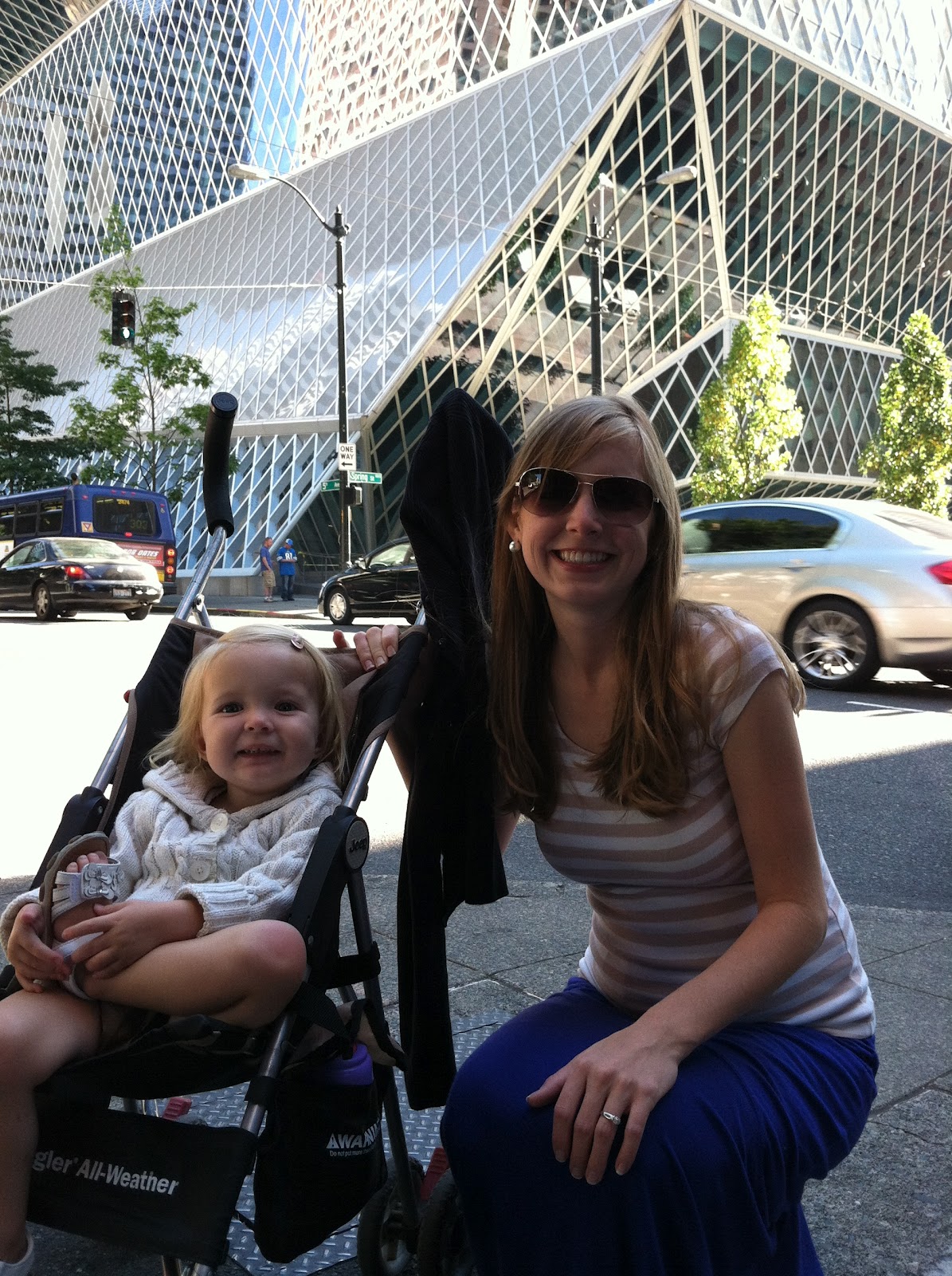 Ella was great on the plane, and we made it to Seattle without incident (and I successfully navigated THREE airports with a child, a stroller, a carseat, a suitcase, and a backpack).