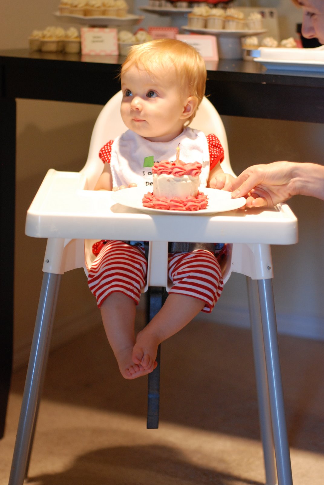 I had warned Bart the night before that if Ella made any indication that she disliked all the attention on her while we did the cake thing, it would be immediately over. I was determined not to be one of those parents who is forcing their baby to have a good time eating cake, when they clearly are hating every second of it.