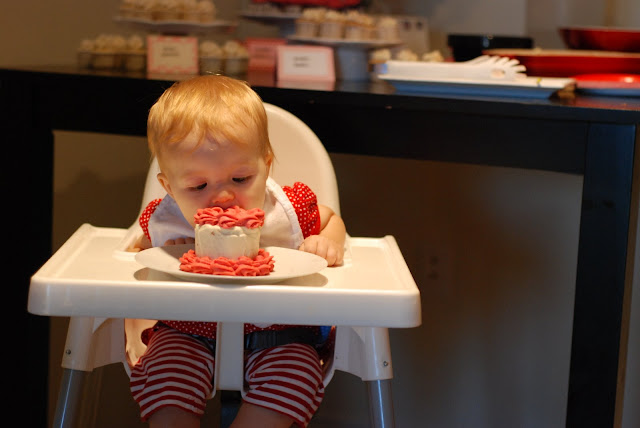 Those are the cutest baby-eating-cake pictures I've ever seen in my life. Also, those cupcakes? I'll take three of each, please. You have my address.