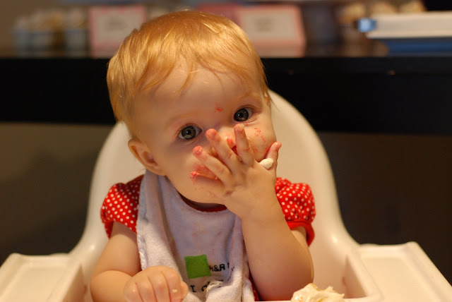 And then, the minute I stepped away from her, she stuck her face right into the frosting.