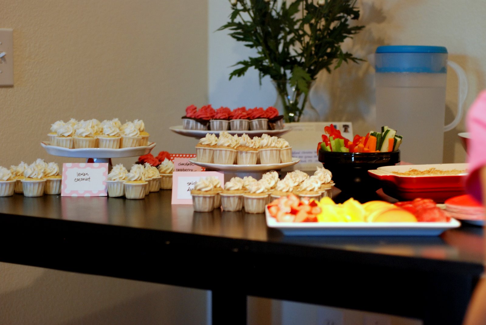 I didn’t want this party to cost a fortune, so we didn’t do a lot of food. I had a fruit plate, a large dish of jalapeno popper dip (Bart was devastated that this got completely scarfed) with vegetables and crackers, and three kinds of cupcakes.