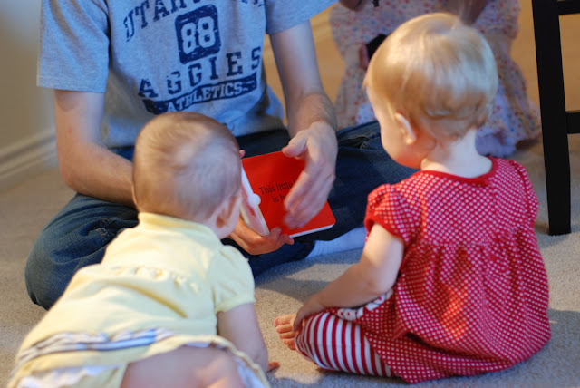 Ralphie’s husband made fast friends with the babies by reading them a little flip book over and over again.