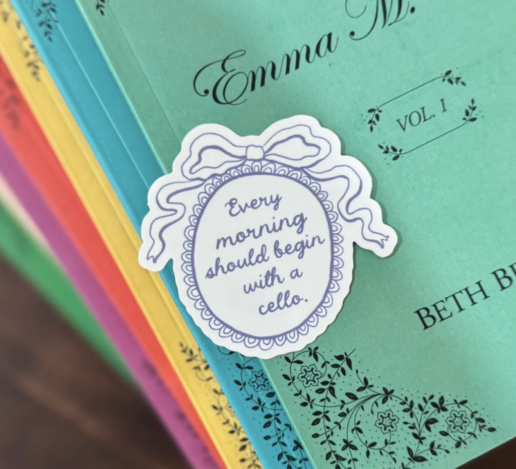 This sticker would make such a cute stocking stuffer for the Emma M Lion fan. I have to agree with her- a morning that starts with cello music is pretty delightful!