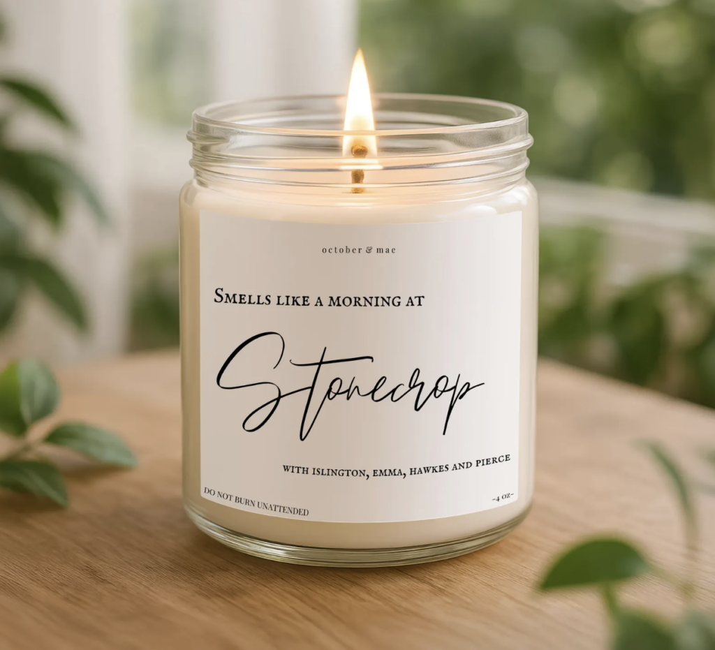 This customizable candle would be such a fun gift! You can pick the scent to match whatever you fantasize Stonecrop to smell like. You can also choose the jar color and size!