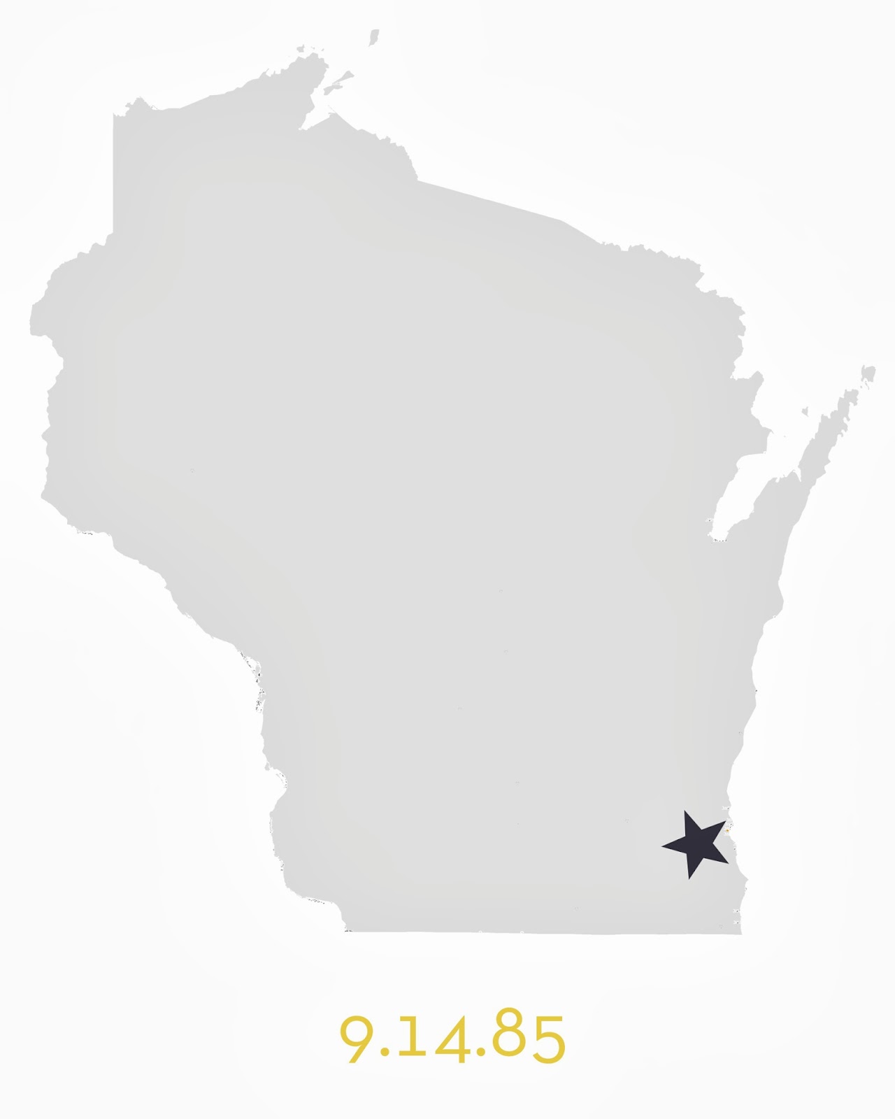 Shortly before Ani’s birth, I realized that all four of our family members have been born in different states, so I made some state maps that featured each of our birth states and birth dates.
