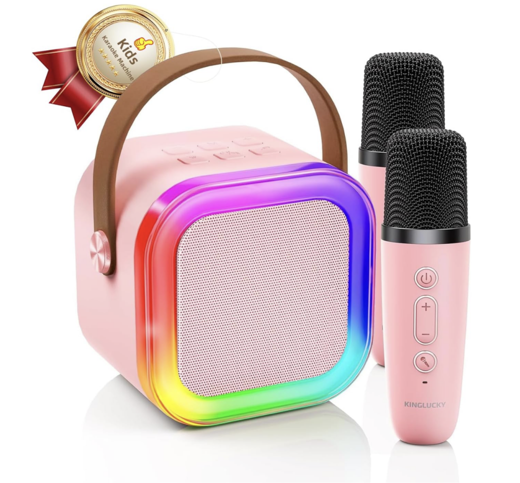 We’ve done karaoke a few times as a family and my girls LOVE it. I knew the moment I saw this set that it would be a huge hit (and when I shared it online, so many families said they had it and loved it!)