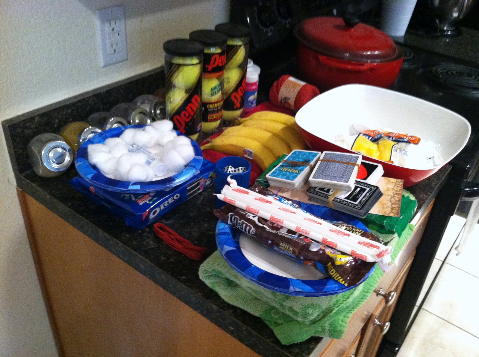 A few weeks earlier, Bart’s office had done some Minute to Win It games and Bart came home, wanting to recreate it with some of our friends.