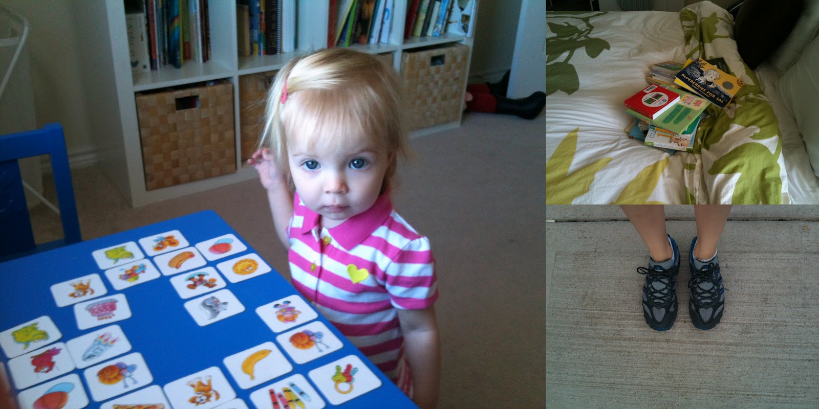 7:40 a.m. Wake up to hear Bart home and Ella running in to see me. She immediately wants breakfast, but Bart distracts her for five minutes by asking her to do push-ups with him (it is SO cute to watch her try to do them) so I can check my email and glance at Google Reader on my phone.