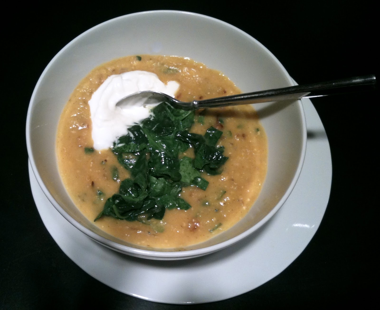 To serve, put a scoop of rice in each bowl, then ladle the soup over the top, sprinkle on the spinach, and finish with a big dollop of yogurt.
