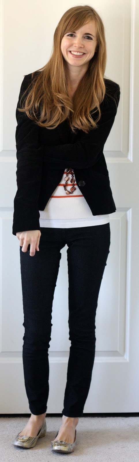 I love a nice tailored blazer! It can elevate even the grungiest pair of jeans. And this looks lovely with the black pants!