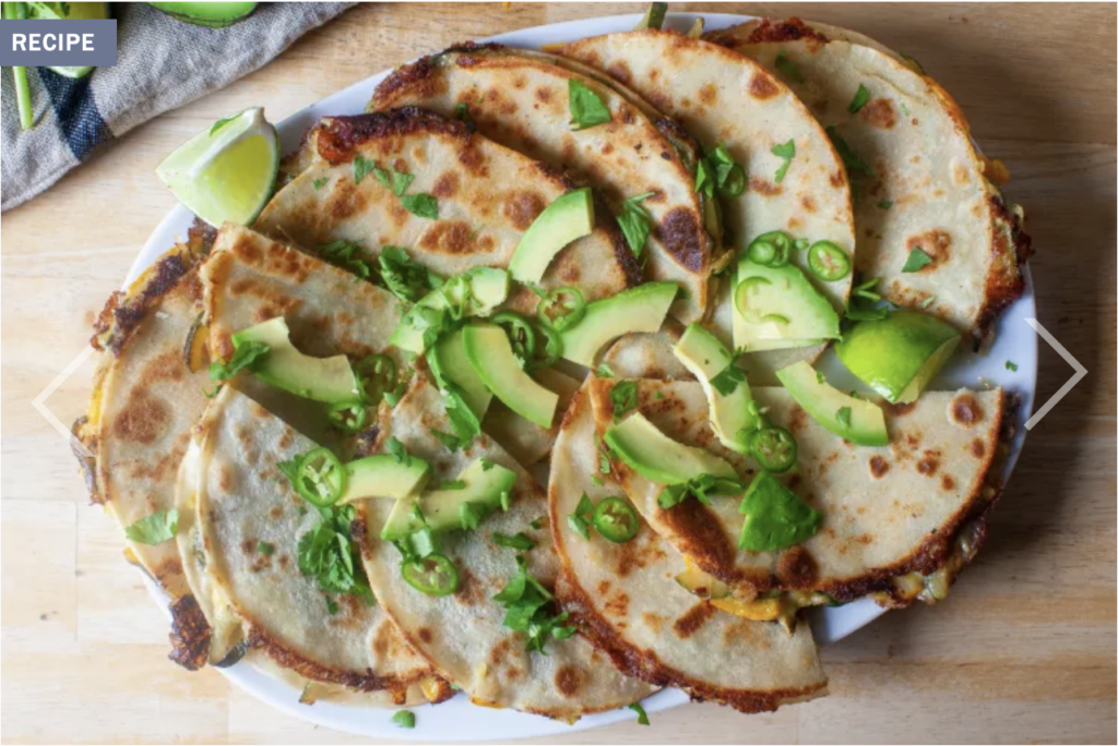Kelsey from the Everyday Reading team recommended these vegetarian tacos and they sound like the perfect combo of summer flavors: zucchini, corn, and peppers, plus extra creamy goodness from crema and cheese. And, if you aren’t into doing vegetarian they are really easy to add chicken to (it shares about it in the recipe).