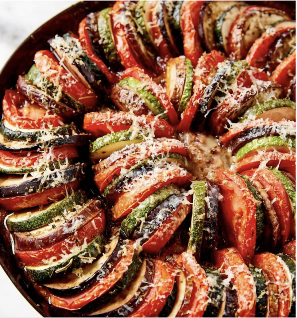 Anyone else think of the sweet little rat from the Disney movie? This colorful comforting classic uses all the late-summer veggies. Bonus: it tastes even better the next day.