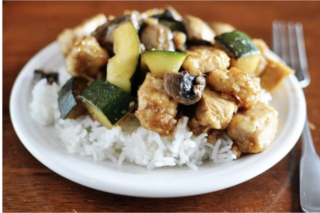 If you are looking for a way to use up a lot of zucchini – this one uses 4! This simple stir-fry is made with just chicken, zucchini, mushrooms, and a few pantry staples. Easy, quick, and healthy!